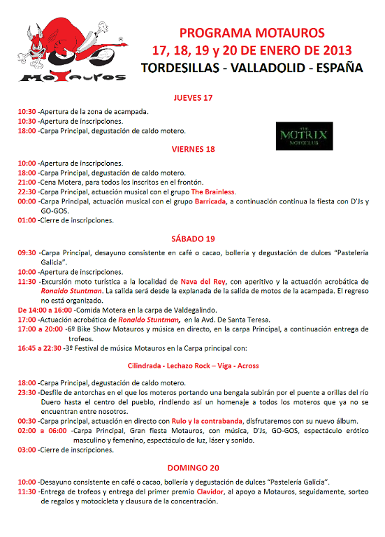 PROGRAMA MOTAUROS 16, 17, 18 y 19 DE ENERO DE 2014