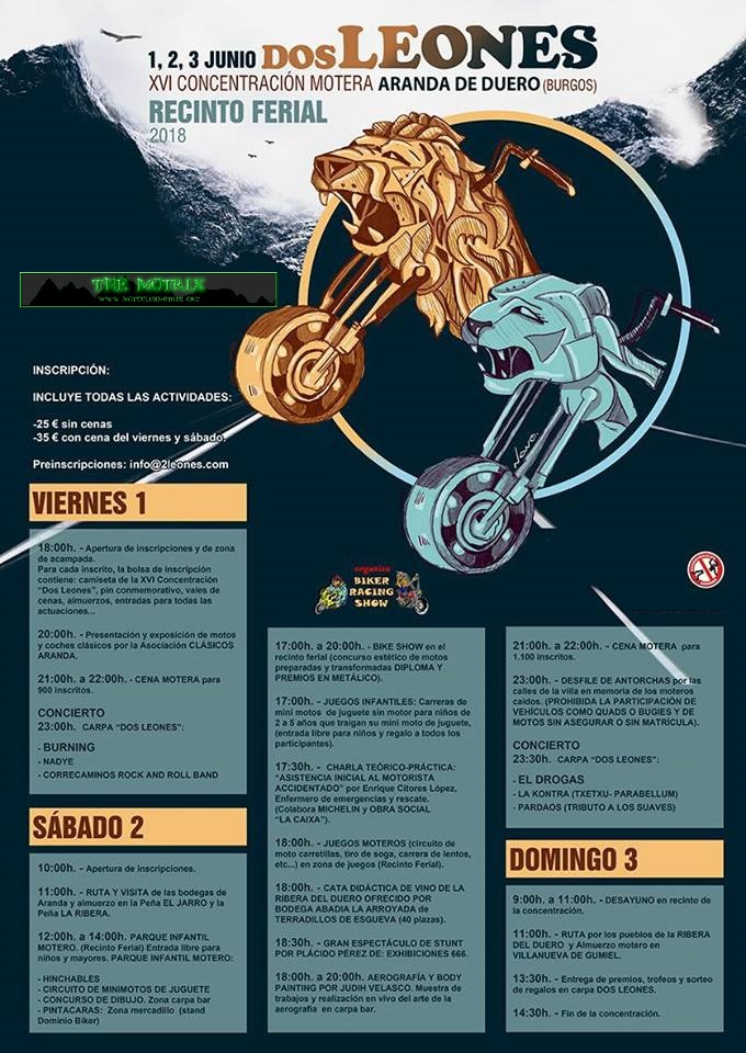 HOLA AMIGOS, PARA APUNTARSE CON ANTELACION EN LA CONCENTRACION MOTERA DOS LEONES DE ARANDA DE DUERO, BURGOS. A CELEBRAR LOS DIAS 1, 2 Y 3 DE JUNIO DEL 2018. VAMOS A DAR LA FACILIDAD DE HACER ESTA PRESCRIPCION A LOS MOTEROS INTERESADOS EN HACERLA.