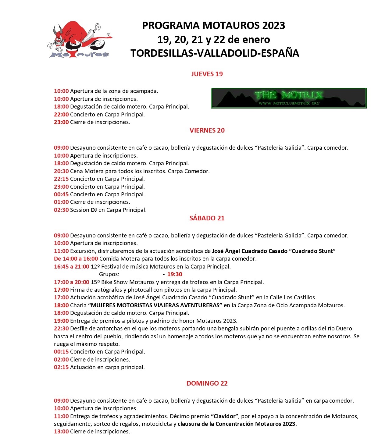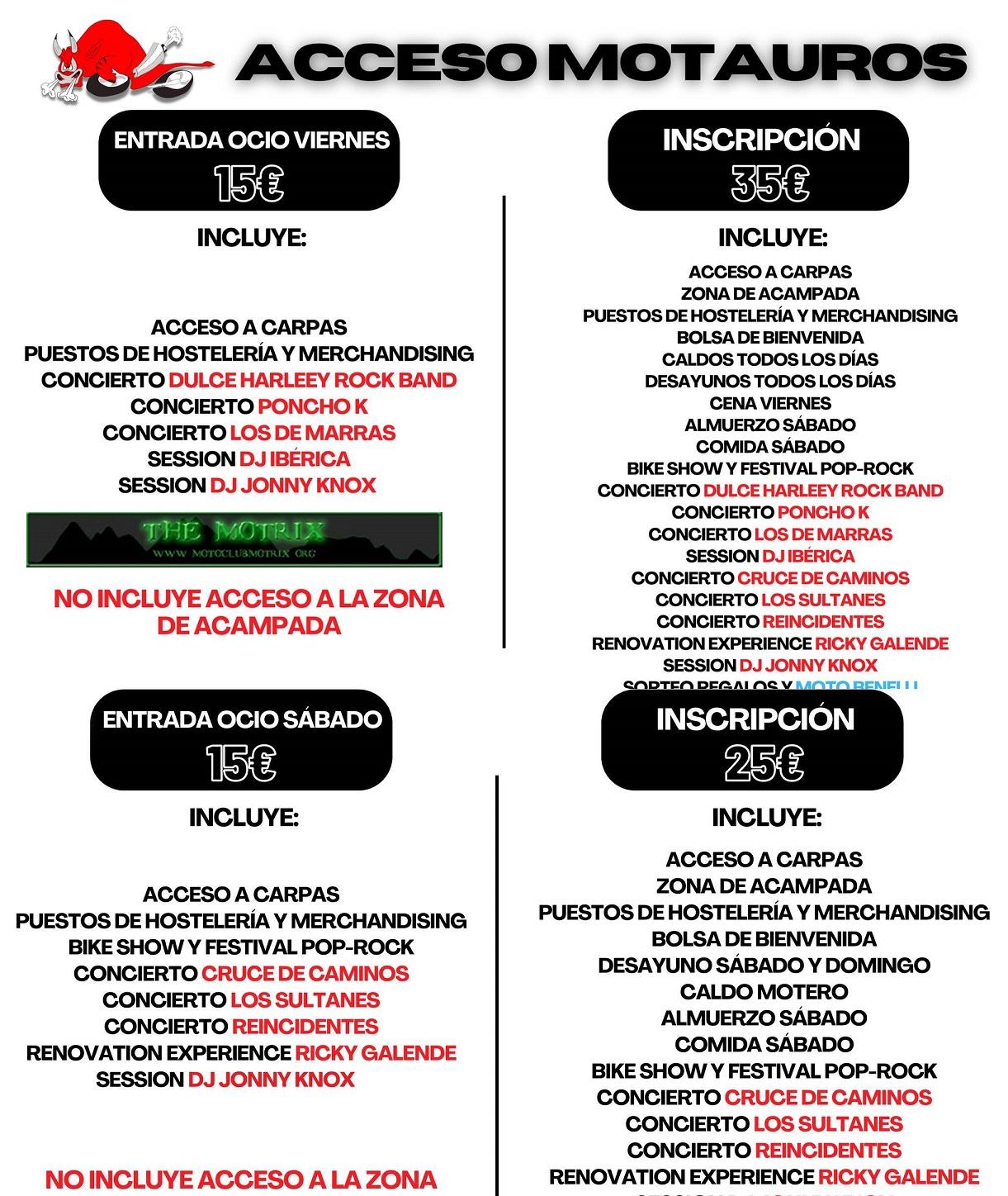 Precios XXII CONCENTRACIÓN MOTORISTA INTERNACIONAL DE INVIERNO MOTAUROS 2023