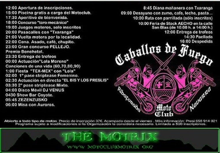 Me gustaría hacer mención a la especial atención del motoclub Caballos de Fuego en todo el fin de semana y reflejado en la pancarta que se lee al salir de Ribaforada: