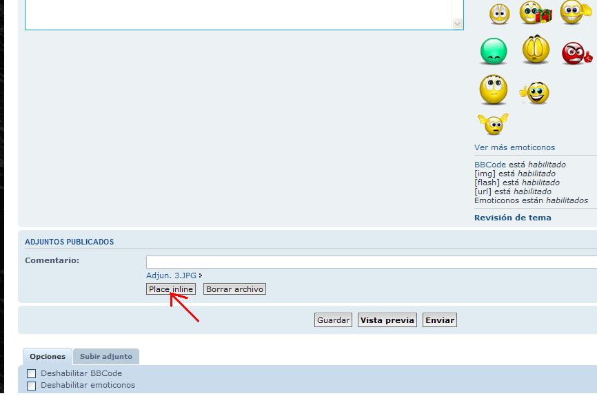7º Por ultimo CLIKA en Place Inline .......y luego ya ENVIAR