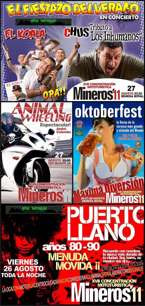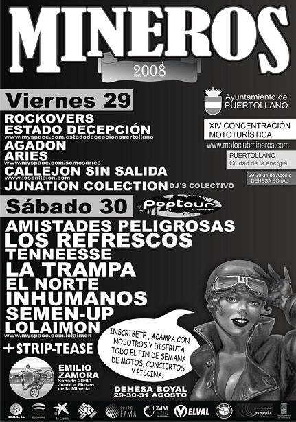 El motoclub Mineros de Puertollano ya anuncia en su web las fechas de la edición XIV de concentración Mineros 2008, en breve ampliaremos información ... está prevista para el 29-31/08/2008.
