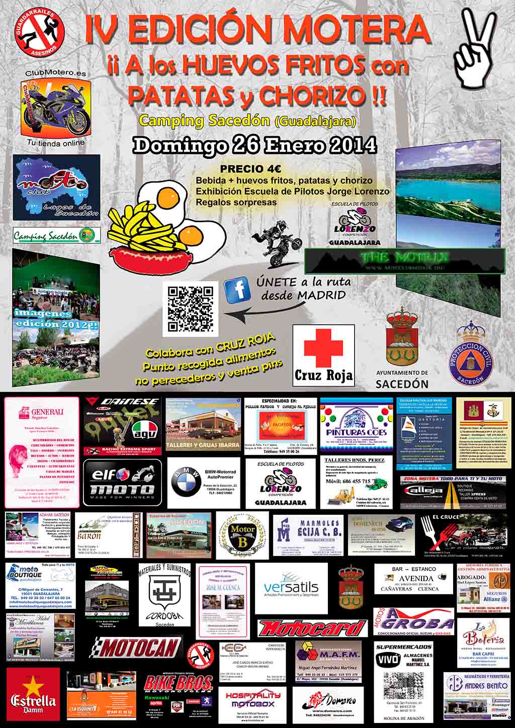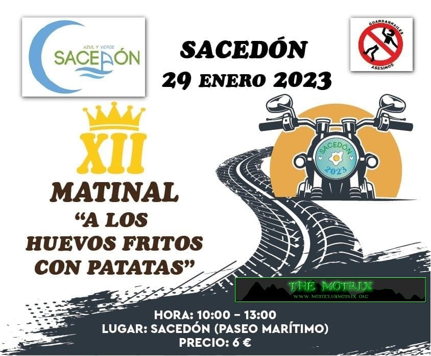 El horario de 10 a 13 por 6 euros ven y disfruta de unos ricos huevos fritos con patatas y chorizo mas tu pan y bebida, mas de 5000 moter@s se dan cita cada año en una de las concentraciones más importantes de la zona centro.