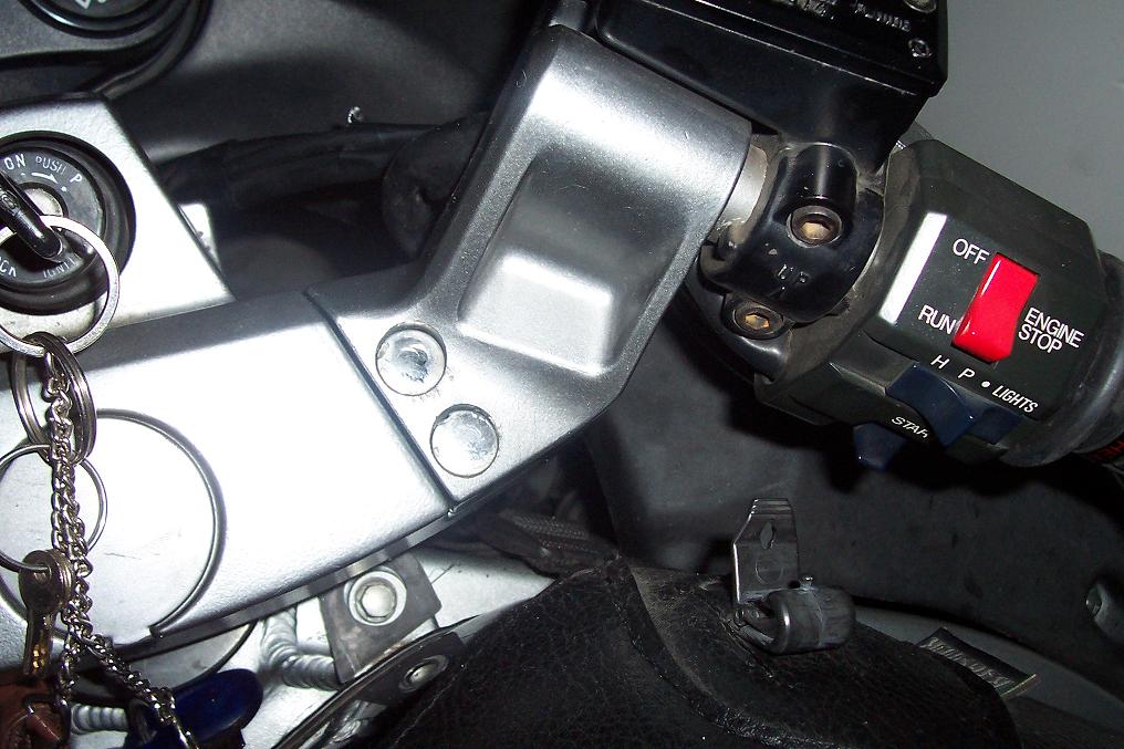 Desmontamos los soportes del manillar, sacando las fundas y dos tornillos allen