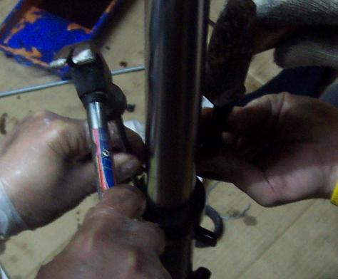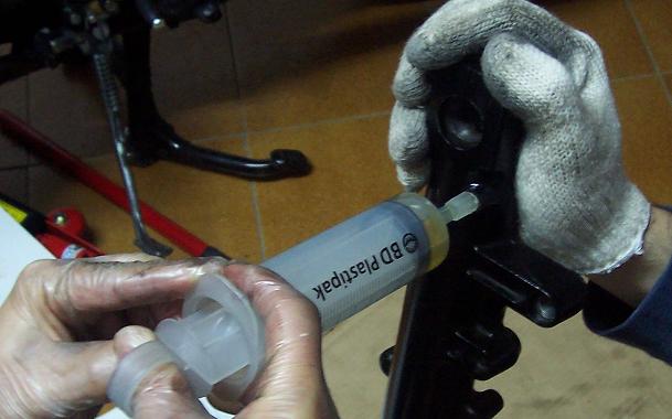 Cuando lo tengamos lleno ,ponemos el tornillo ,y ya podemos meter la barra ,miramos que nos quede igual de alta que antes ,y montamos todo lo que teniamos desmontado.