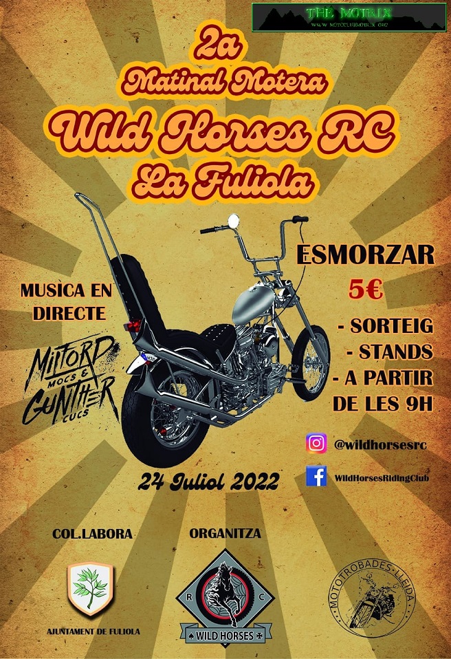 Després d'un parell d'anys sense matinal a causa de la pandèmia reprenem el que vam iniciar el 2019. Ja tenim cartell per a la 2a Matinal Motera Wild Horses RC a La Fuliola. TOTHOM està convidat a assistir-hi