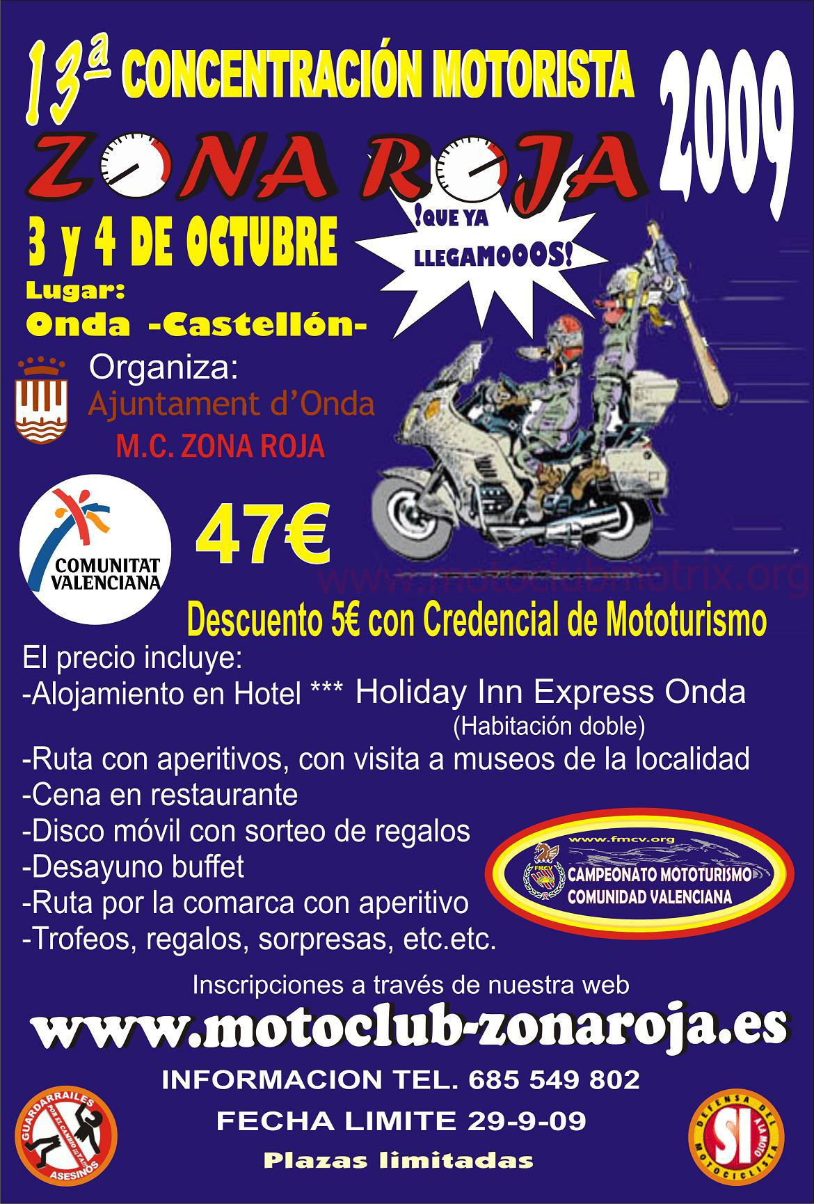 El Moto Club Zona Roja quiere celebrar contigo nuestro 16º evento mototurístico, este año será los días 22 y 23 de Septiembre de 2012, .Salida de Inglesuela del Cid
