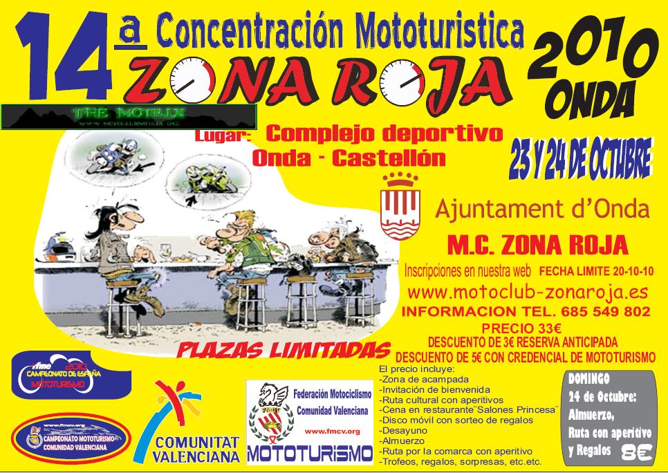 nos complace invitaros a la 14ª Concentración de Mototurismo, en la localidad de Onda (Castellón) que organiza el Moto Club Zona Roja en colaboración del Ayuntamiento de Onda