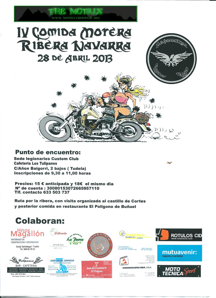 Salida: C/Añon Baigorri, cafeteria " Los Tulipanes " y posteriormente recorrido motero