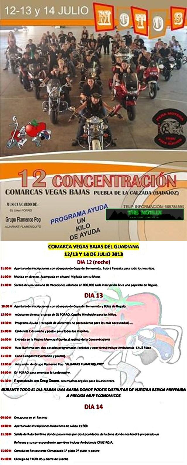 Programa 2012Motrix Reloaded escribió:XI CONCENTRACION DE MOTOS COMARCAS VEGAS BAJAS DEL GUADIANA