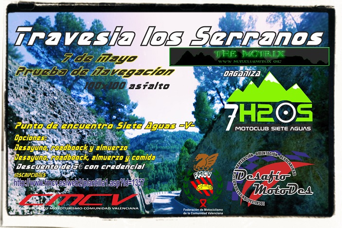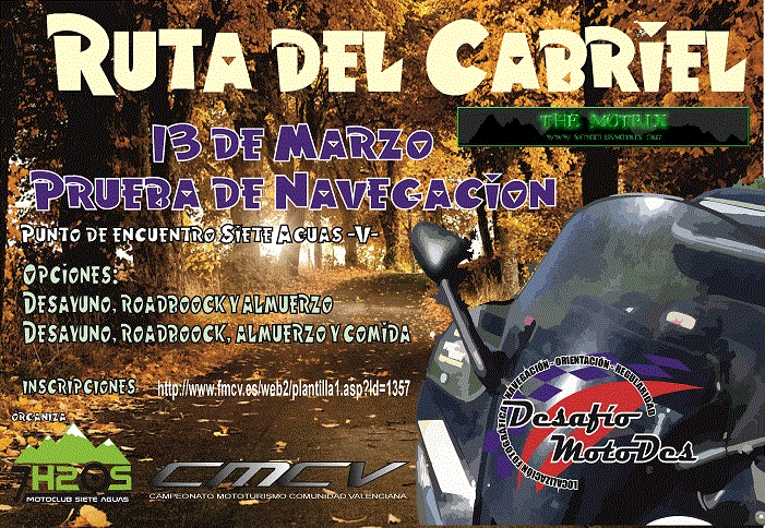El Club Motociclista Siete Aguas organiza el próximo día 13 de Marzo de 2016 un Ruta de navegación.