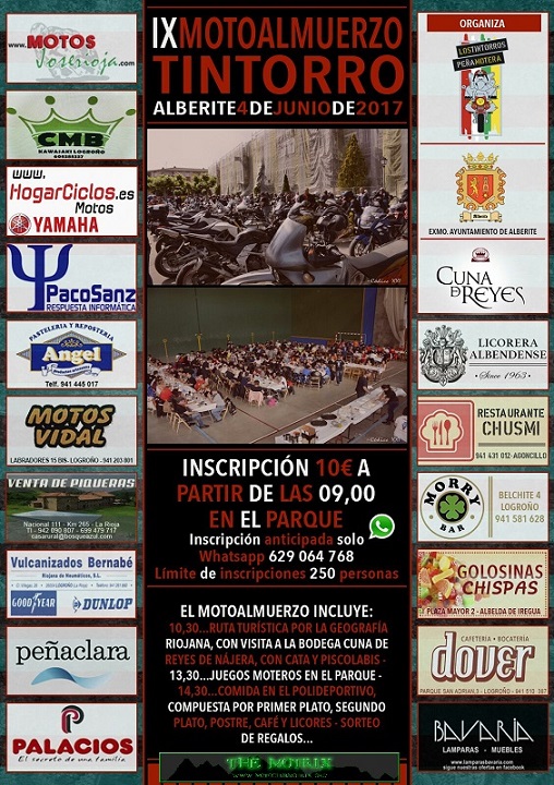 El motoalmuerzo se realizará en Villamediana de Iregua (Junto al Polideportivo) el día 30 de mayo de 2010.(la Rioja)