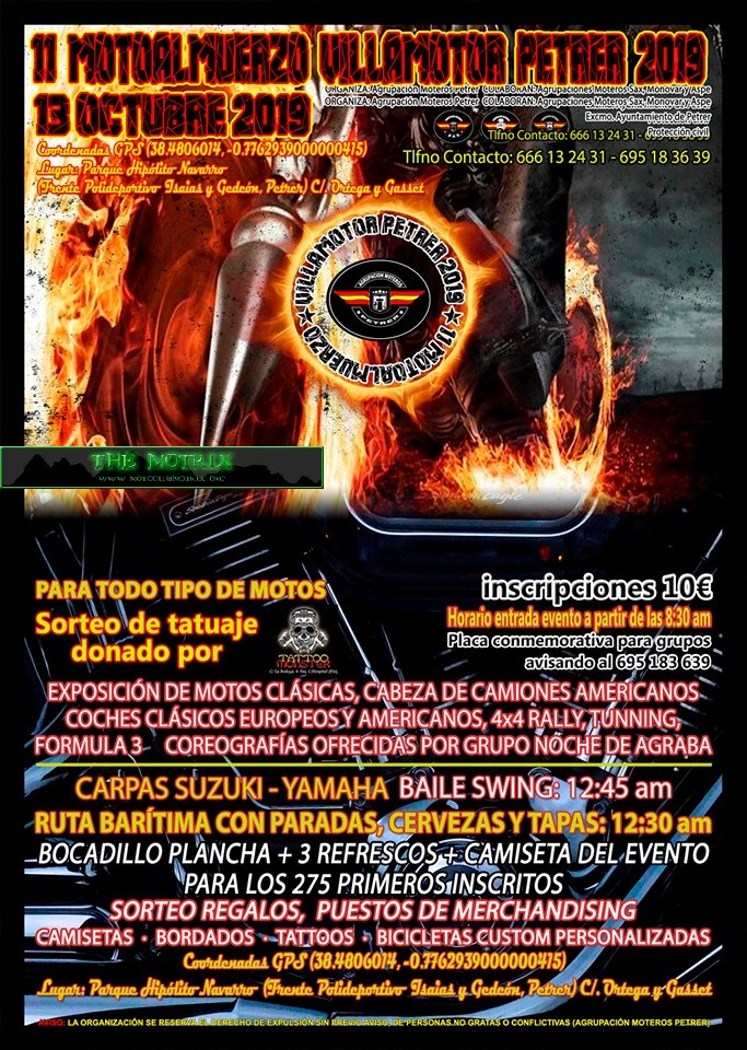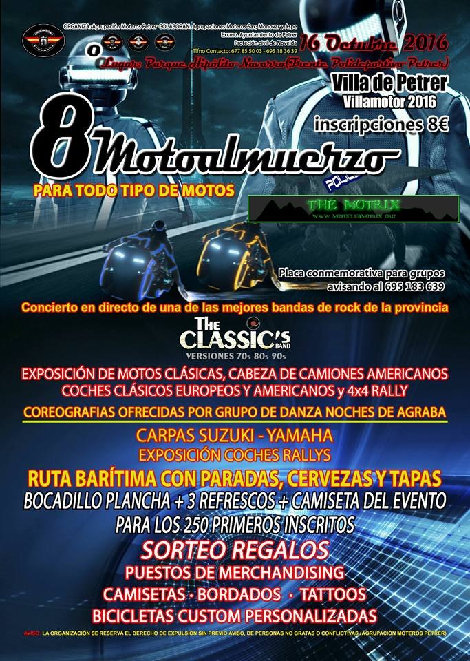 El próximo 15 de octubre a partir de las 9 de la mañana tendremos nuestra 9 edición del motoalmuerzo Villa de Petrer Villamotor 2017