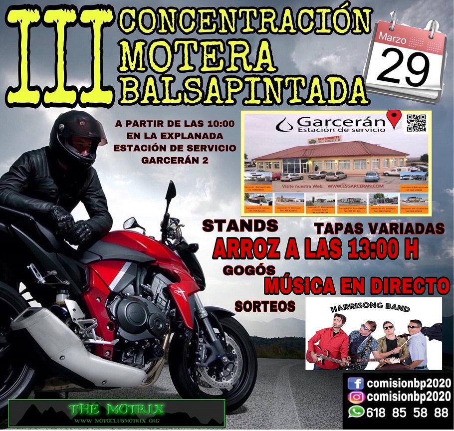 Realizaremos la 3 edición de nuestra concentración de nuevo en la explanada del Área de servicio Restaurante Garcerán 2. Tendremos paella, tapas variadas, cerveza a 1€ y copas. Sortearemos cascos, fundas para moto, guantes y material motero. Dispondremos de Stands de venta que instalarán varias tiendas. También daremos premios. Y música en directo a cargo del Grupo tributo ochentero Harrisong Band.