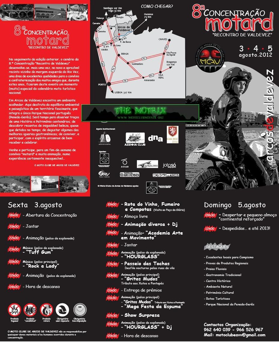 Vem o Moto Clube de Arcos de Valdevez comunicar-vos a data da realização da 8.ª Concentração Motard "Recontro de Valdevez" que este ano por diversos motivos se vai realizar entre os dias 3 e 5 de AGOSTO de 2012.
