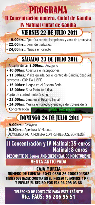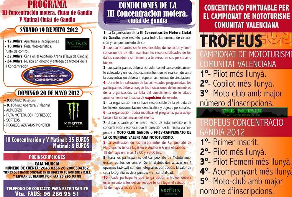 PROGRAMA, PRECIOS, CONDICIONES Y PROGRAMA DE LA V MATINAL Y III CONCENTRACION MOTERA GANDIA 2012