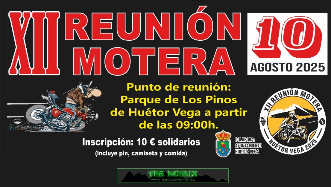 El domingo 13 de agosto celebramos la VI REUNIÓN MOTERA de Huétor Vega, la cual será benéfica como siempre.