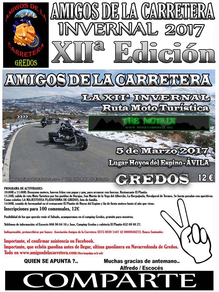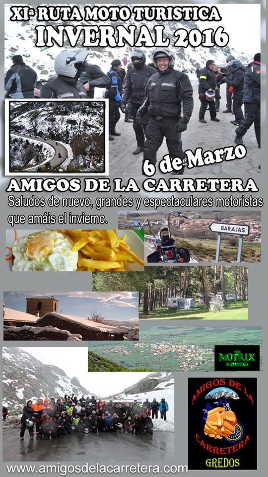 Para la fecha del 6 de Marzo del 2016, Amigos de la Carretera celebra la XIª Ruta Moto Turística Invernal en las tierras de Gredos. (Matinal).