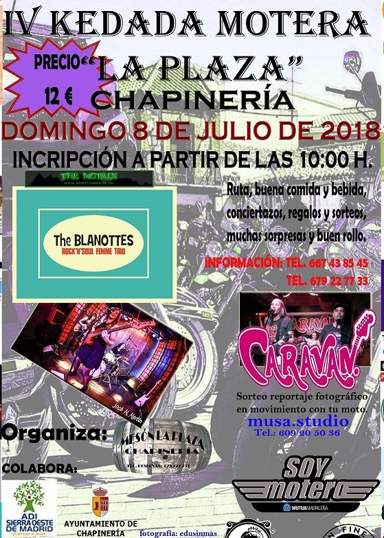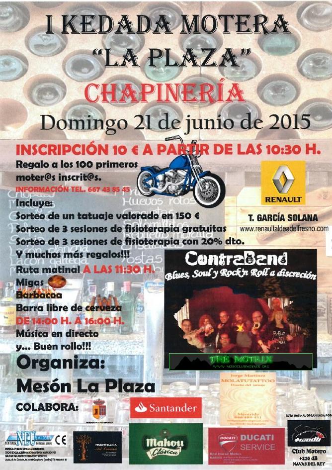 Aplazamos por motivos meteorológicos la IV Kedada Motera LA PLAZA en Chapinería para el próximo domingo 8 de julio de 2018.