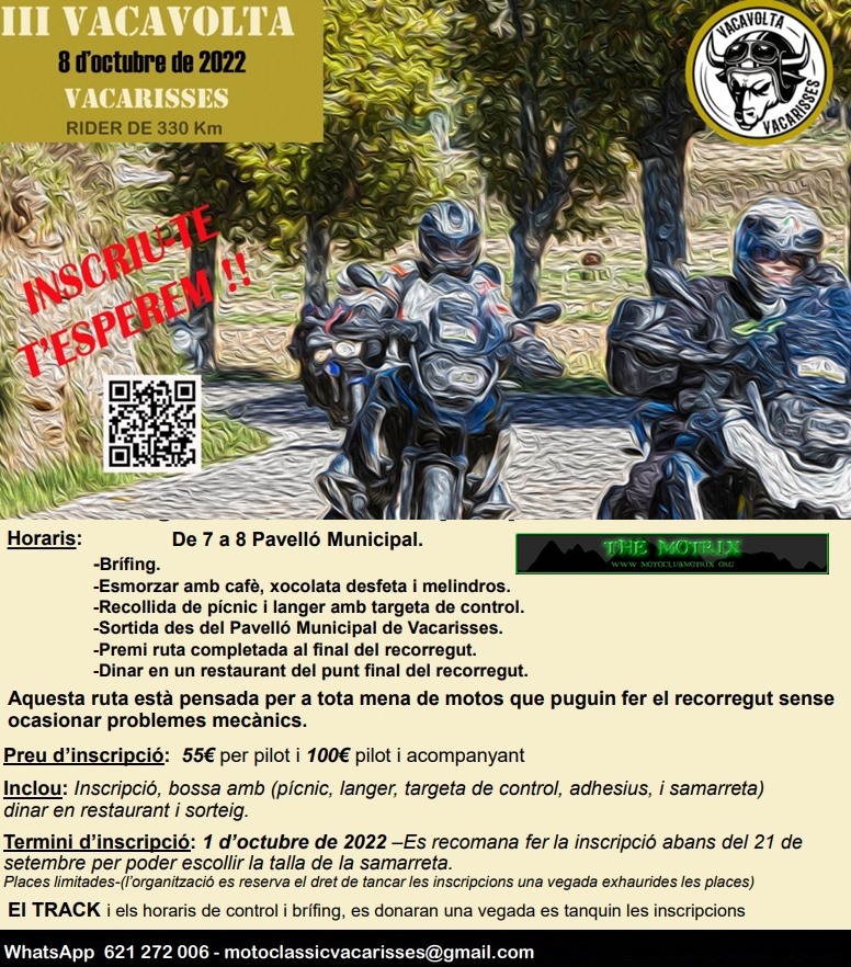 Places limitades- 150 motos (l’organització es reserva el dret