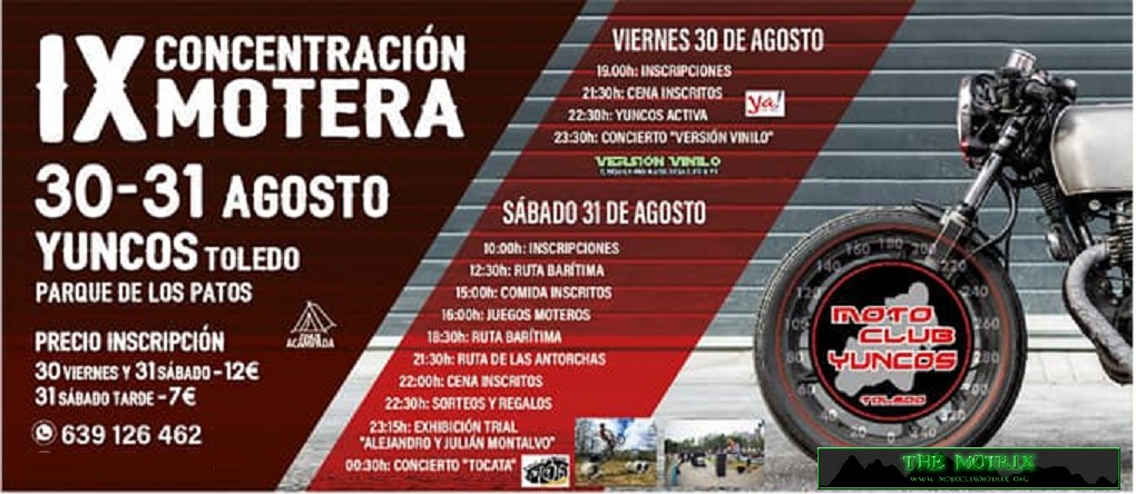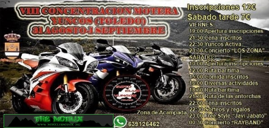 VIII Concentración motera de Yuncos. Desde el viernes 31 de Agosto hasta la noche del sábado 1 de septiembre.