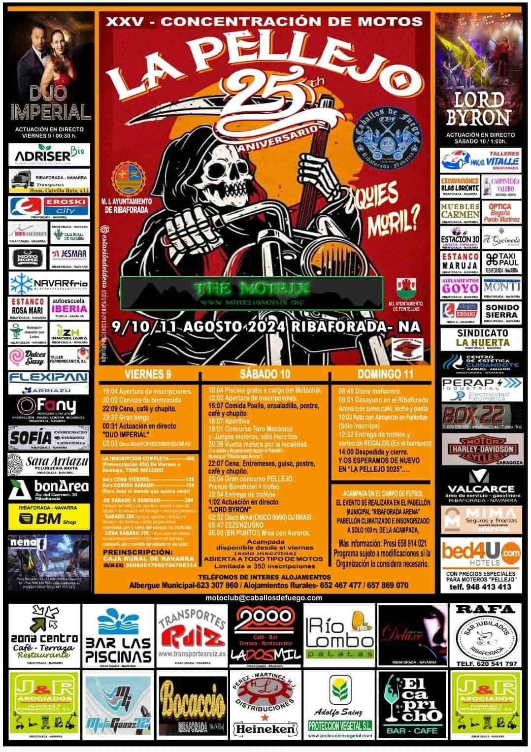 Sábado. Amanece sin prisas, pues no entra hoy el desayuno, y nos lo tomamos con calma en el Bar Jubilados -nos hacemos mayores jeje-, donde echamos buena parte de la mañana. Llegada la hora de comer, paella y heladito. Por la tarde echamos una siesta en las piscinas y tras "picar el hielo" nos metemos en sus aguas frías. Nos visitan Ainoa, Itziar y Sergio de Akelarre AM y familia. Rubén nos deleita con un curso de costura. Risas aseguradas. Volvemos al pabellón donde hay concursos moteros y de toro mecánico. Y la vuelta motera para darnos visibilidad a la localidad. Para dar paso a la cena con pollo asado con patatas. Con los cafés arranca la entrega de trofeos y el concurso de Pellejo que estuvo bien interesante y Aintzane casi se lleva el premio de bono de hotel. A continuación música en directo y DJ. Si bien con el DJ el recinto se vacía, a su cierre aún improvisamos un almuerzo con un miembro de la organización en su merendero, a base de jamón, chorizo y queso y la última cerveza, a lo que desde aquí vuelvo a dar gracias por el momentazo y la acogida.