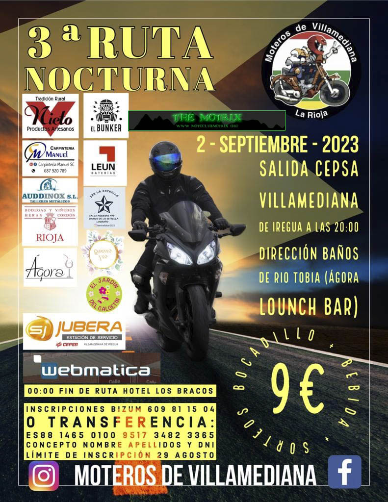 Como teníamos fiesta los tres días,(Laura y yo mismo) y Pitu de Moteros de Villamediana nos comentó que nos animamos. Pues es lo que hicimos, no había muchas opciones por aquí y como nos gusta La Rioja, hecho. Salimos el viernes sin prisas, parada a desayunar en Fraga, parada a comer Albelda de Iregua, Logroño. Llegamos al hostal, descargamos, nos pusimos ropa cómoda. Cogimos la moto para acercarnos a la zona antigua de Logroño en moto. Ver la iglesia, pasear por el casco antiguo y luego tapeo por la calle Laurel. Luego para el hostal. El sábado quedamos con Moteros de Villamediana para realizar una ruta por estas carreteras tan guapas de La Rioja. Luego realizamos el vermut en El Rasillo. Llego la hora de comer y nos fuimos de tapeo con Moteros de Villamediana. Teníamos un poco de tiempo libre hasta las 19:30 h, nos fuimos hacer la siestecita. A las 19:30 h empezaba la IV Ruta Nocturna de moteros de Villamediana y luego cena con bingo y varios premios.