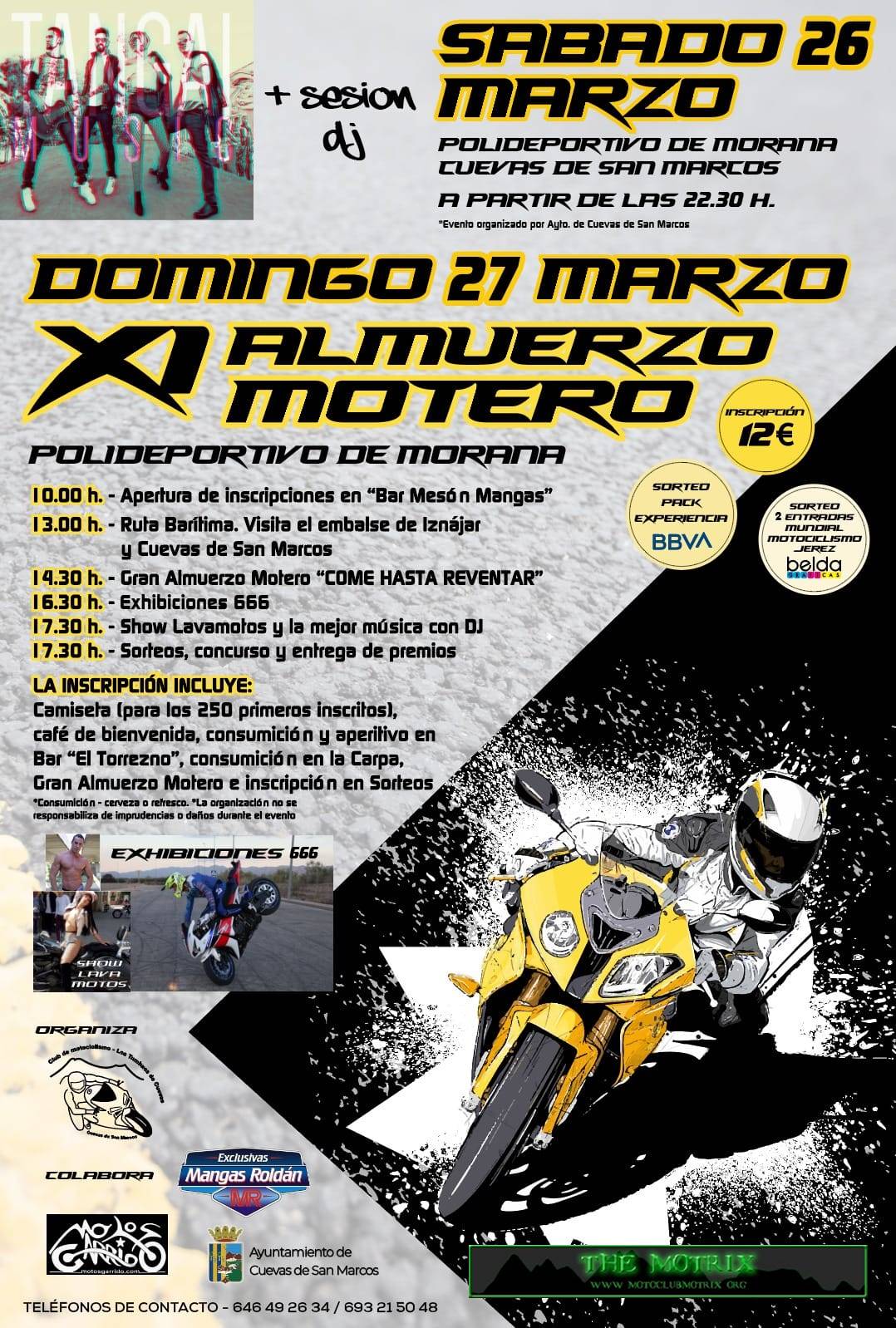 > Incluye:Camiseta para los primeros 300 inscritos,café de bienvenida,consumición y aperitivo en poblado del pantano,consumición y aperitivo en Bar Torrezno,consumición en carpa,Gran Almuerzo Motero he inscripción en sorteos.