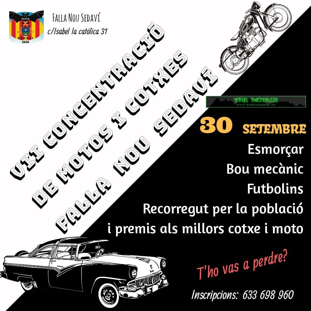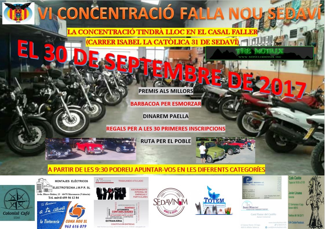 Por tercer año consecutivo la Falla Nou Sedavi organiza su ya tradicional Concentración de Motos y Vehiculos Antiguos.