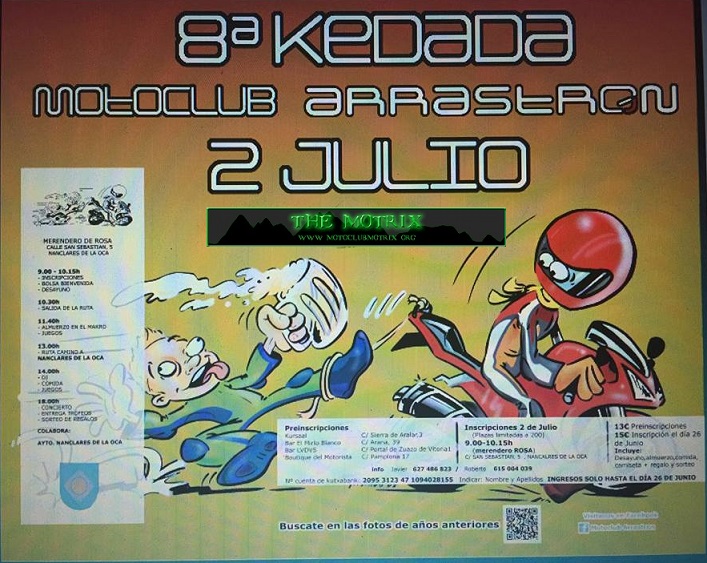 CAMISETA/ BOLSA BIENVENIDA/ DESAYUNO/ RUTA/ ALMUERZO/ JUEGOS/ RUTA HACIA La Puebla de Arganzon/ CONCIERTO (kontroversion)/ COMIDA/ JUEGOS MOTEROS/ CONCIERTO (Whisky Dyck)/ ENTREGA DE TROFEOS/ SORTEO DE REGALOS.