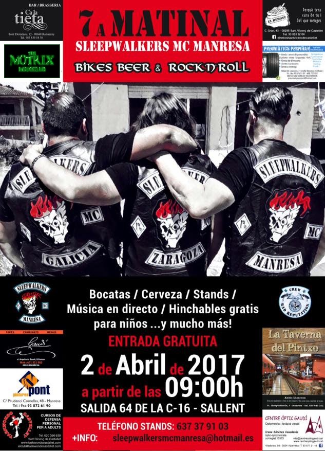 No son mi gran pasión las matinales, me da pereza montarme en la moto si se que voy a llegar ese mismo día, pero ya sé que no puedo superar mi síndrome de abstinencia y decidí ir la III matinal Sleepwalkers. Ya es primavera, no hace ese frio invernal y reo que se acercará un gran número de… ¿moteros?, la zona cero está en la zona deportiva de el Pont de Vilomara, comarca del Bages, cerquita de Manresa, un pueblo pequeño con unos 3800 habitantes pero que “se deja” organizar por más de un grupo diferente almuerzos de este tipo.