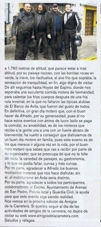 yo suelo ir 3 o 4 veces al año a Candeleda un bonito pueblo de la sierra de gredos, e rulado en moto por todos esos pueblos y puertos de montaña ''que no hay pocos'' y es una zona que me gusta mucho tanto para disfrutar de la moto como de la montaña asi que me parece genial lo que estais preparando, aun no se si podre acudir pero me gustaria mucho '' lo tengo a 710km de casa'' asi que mucha suerte y ya me ire informando a ver como lo llevais