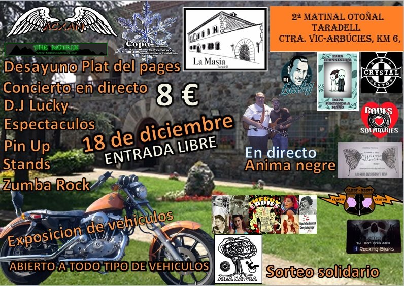 con la colaboración del RESTAURANTE LA MASIA DE TARADELL en la CTRA. VIC –ARBUCIES KM 6. donde se podrá disfrutar de un desayuno PLAT DEL PAGES a base de, Butifarra de Taradell, Butifarra negra, Cansalada, patata al caliu, pa de coca y bebida por 8 €