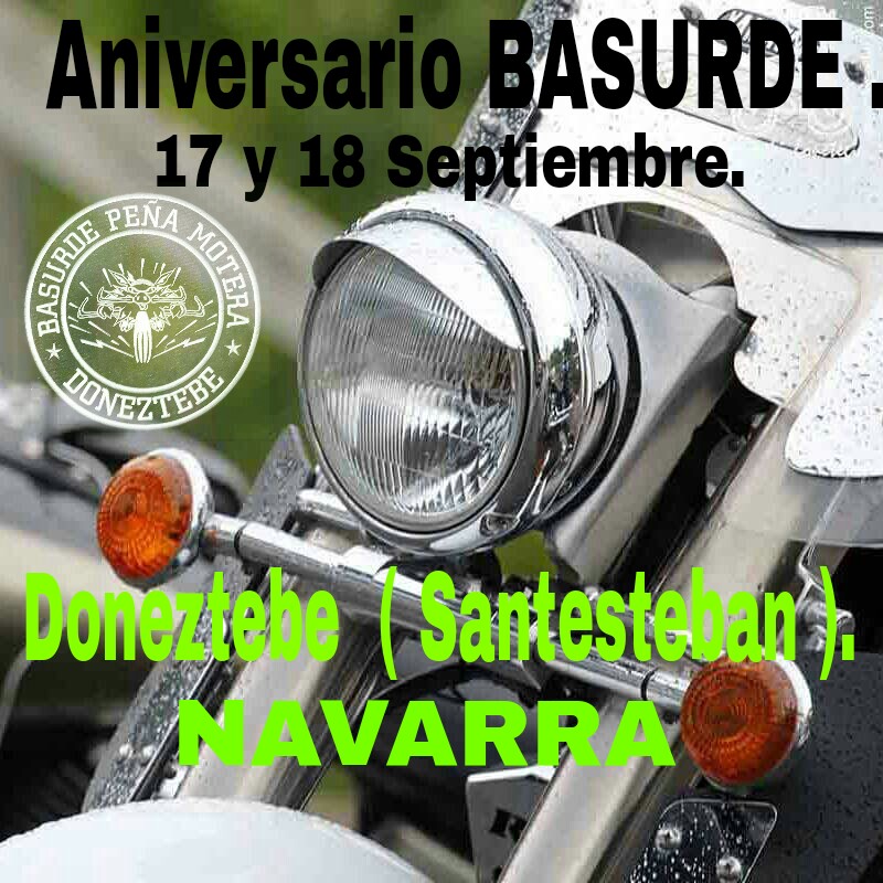 Estamos ya trabajando en la organizacion de la 2º BASURDE BIKER FESTA en SANTESTEBAN(NAVARRA)La fecha 24 y 25 de MAYO.Buena comida ,buena zona de acampada,acrobacias,juegos,buena gente y mucho,mucho rock and roll.Ampliaremos la informacion mas adelante.Saludos trons.