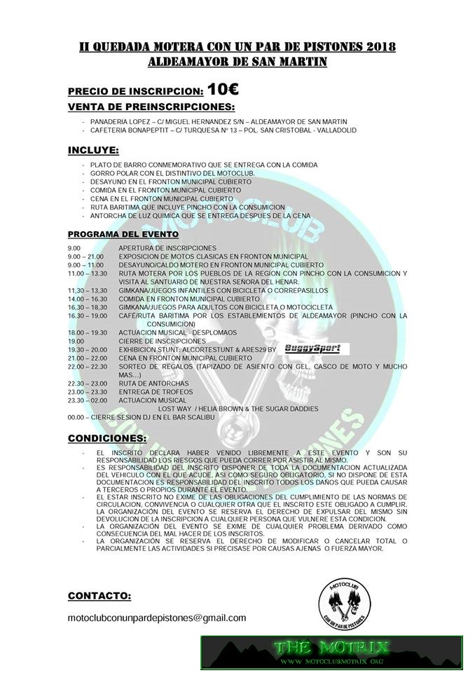 PROGRAMA QUEDADA MOTERA CON UN PAR DE PISTONES