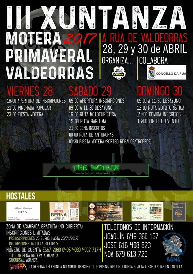 LAS PERSONAS QUE HAGAN RESERVA POR BANCO, POR FAVOR MANDEN UN EMAIL A; p.m.lamanada@hotmail.com anexando nombre y apellidos, número de inscritos, DNI y motoclub para una mayor organización.