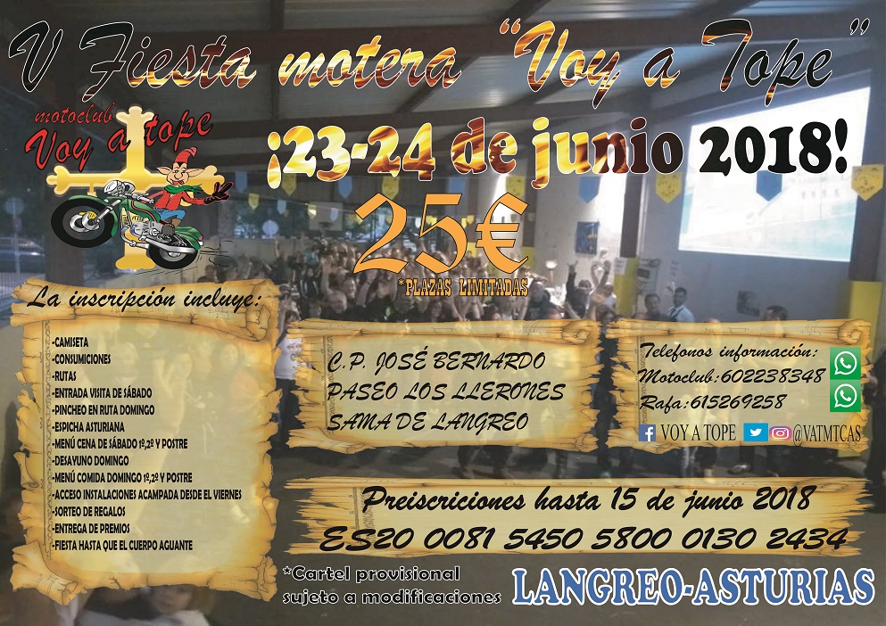 - Si no dispones de whatsapp también puedes llamar por teléfono o mandar un mail a motoclubvoyatope@gmail.com