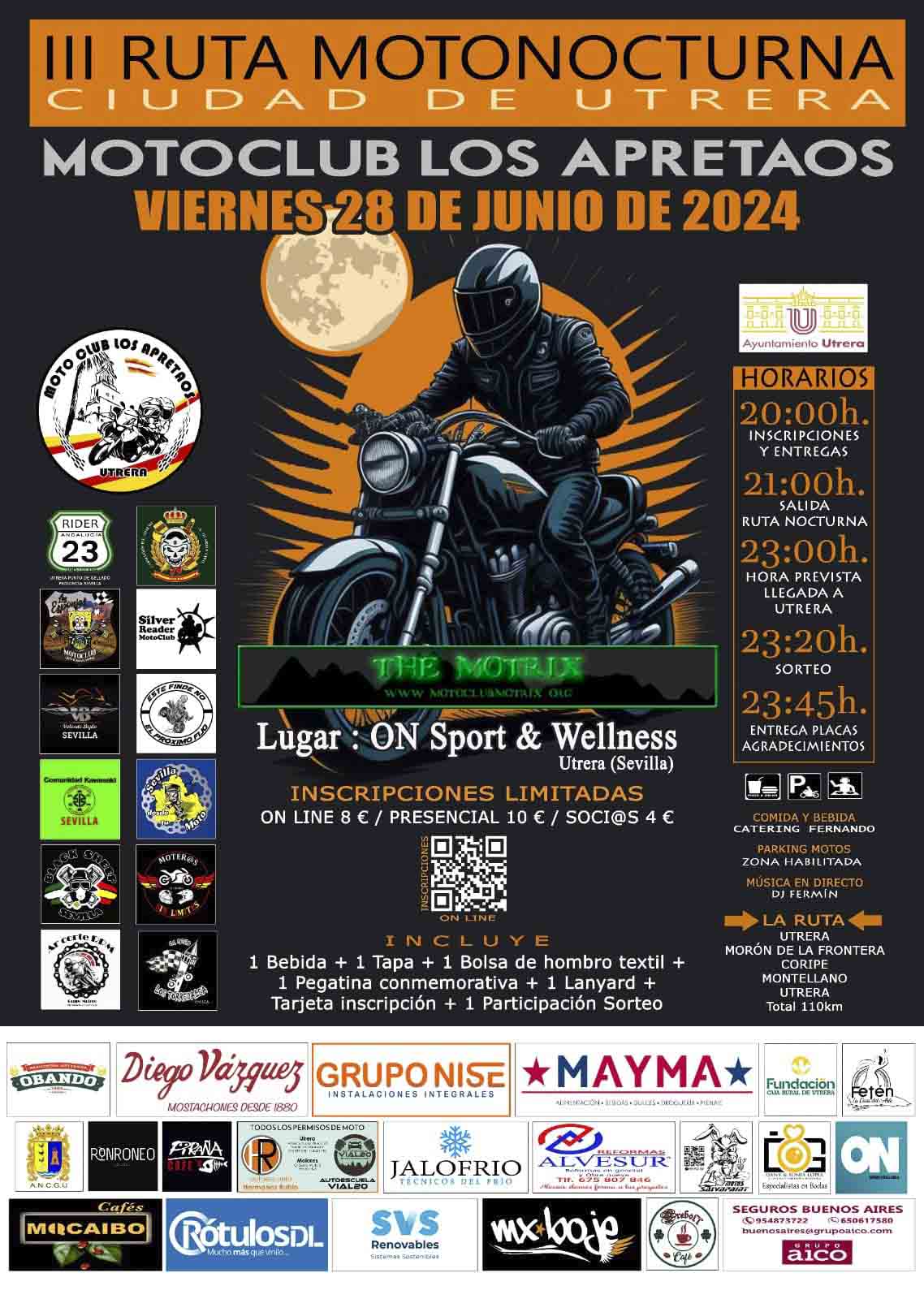 Como ya es tradición en nuestro CLUB LOS APRETAOS DE UTRERA, se realizará una RUTA a la caída del sol para llegar de regreso a Utrera ya de noche. Este año el itinerario se ha recortado para poder disfrutar del evento más tiempo y que no se nos haga tan tarde para cenar.