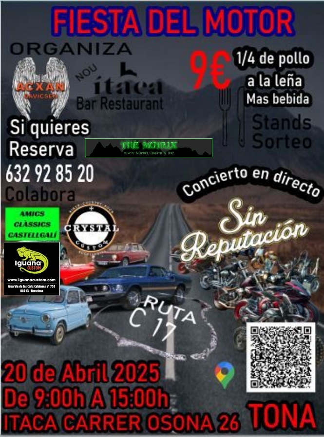 almuerzo a base de 1/4 de pollo hecho a la leña con su bebida y número para el sorteo por 9€. Mientras la gran banda "SIN REPUTACIÓN " nos hará pasar una mañana al más puro ROCK AND ROLL ,todo esto el dÍa 20 Abril 2025 , así que ya sabes si estás por la zona y quieres pasar un buen rato no dejes que te lo cuenten