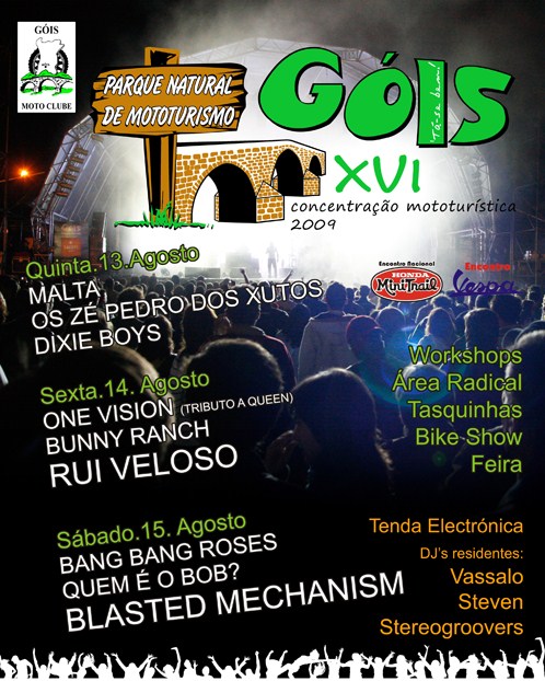 A XVII Concentração de Góis já mexe, as bandas estão quase todas confirmadas, e temos surpresas agradáveis, que em breve iremos desvendar. Marquem na vossa agenda o fim de semana de 19 a 22 de Agosto. Não se esqueçam que em Góis "Tá-se Bem".